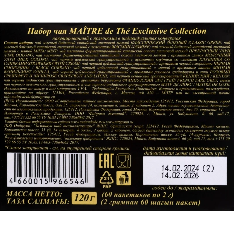 Чай Maitre Exсlusive Collection 12 вкусов, 60 пакетиков