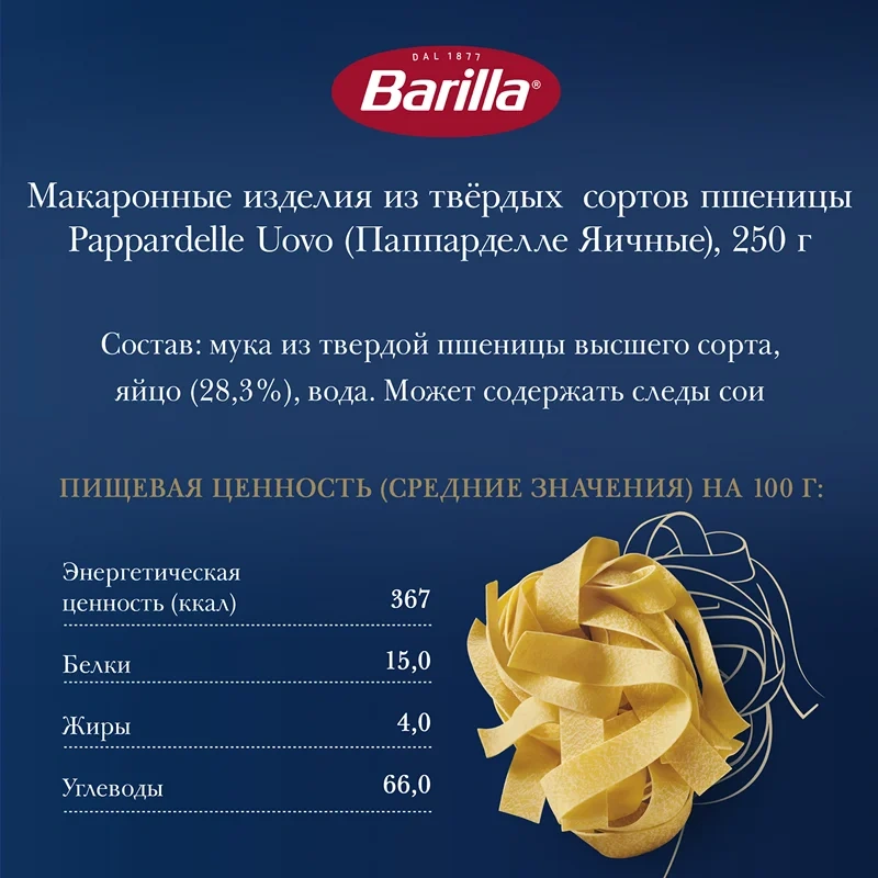 Макаронные изделия Barilla Pappardelle Uovo яичные, 250г