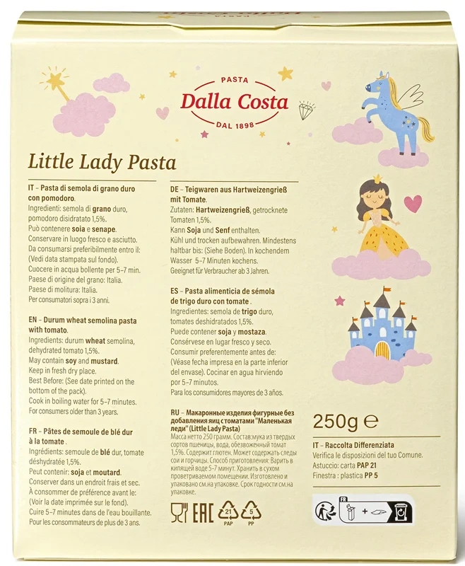 Макароны детские Dalla Costa Маленькая леди с томатами без добавления яиц, 250г