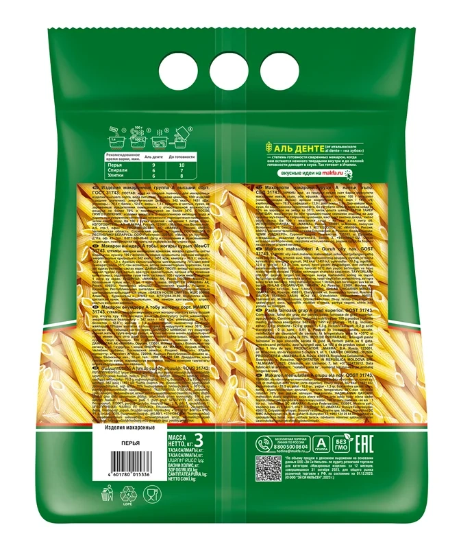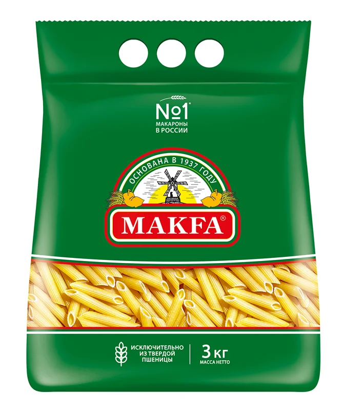 Классические макаронные изделия, изготовленные из твердой пшеницы, в удобной фасовке 3кг. Натуральный продукт, приготовленный по классической рецептуре макаронного теста: пшеничная мука высокого качества и чистейшая вода. Именно благодаря макаронной крупке из пшеницы твердых сортов (дурум) макаронные изделия прекрасно сохраняют форму и вкусовые свойства при варке. Разнообразие видов и форм макаронных изделий Makfa поможет хозяйкам радовать семью вкусными, оригинальными и полезными блюдами каждый день. Благодаря особому помолу, в макаронных изделиях Makfa сохраняются все диетологические свойства твердой пшеницы.