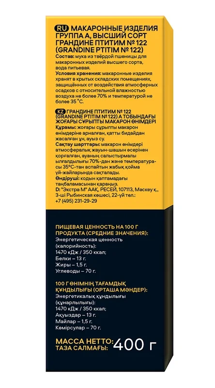 Макароны Pasteroni Grandine Ptitim №122, 400г