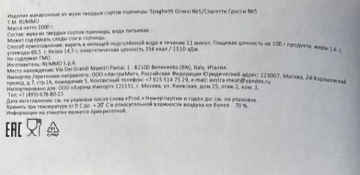 Макароны Rummo Спагетти Гросси №5, 1кг