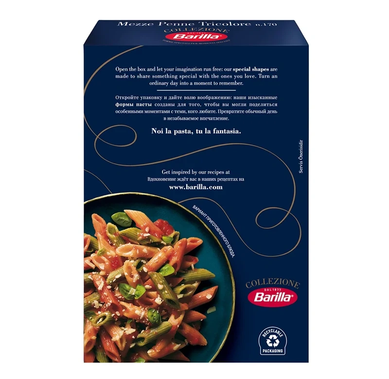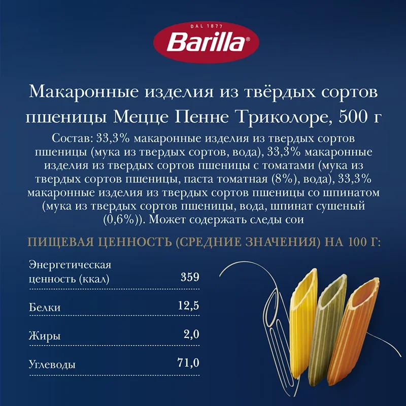 Макароны, паста Barilla Mezze Penne трехцветные, 500г