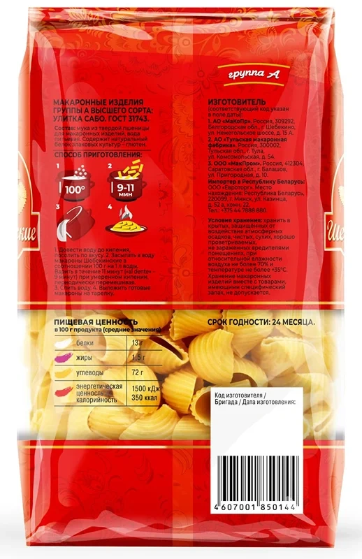 Макароны Шебекинские №395 Улитка Сабо, 450г
