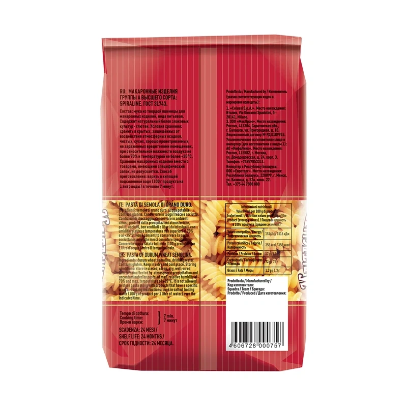 Макароны Maltagliati Spiraline №102 ГОСТ, 450г