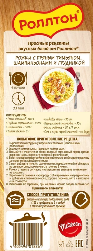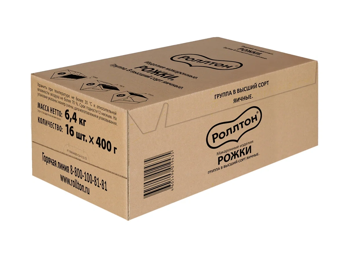 Макароны рожки Роллтон №13 высший сорт, 400г