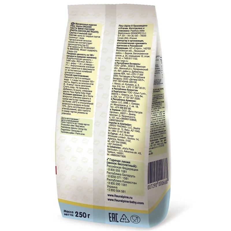 Макароны Fleur Alpine паста мини ракушки, 250г