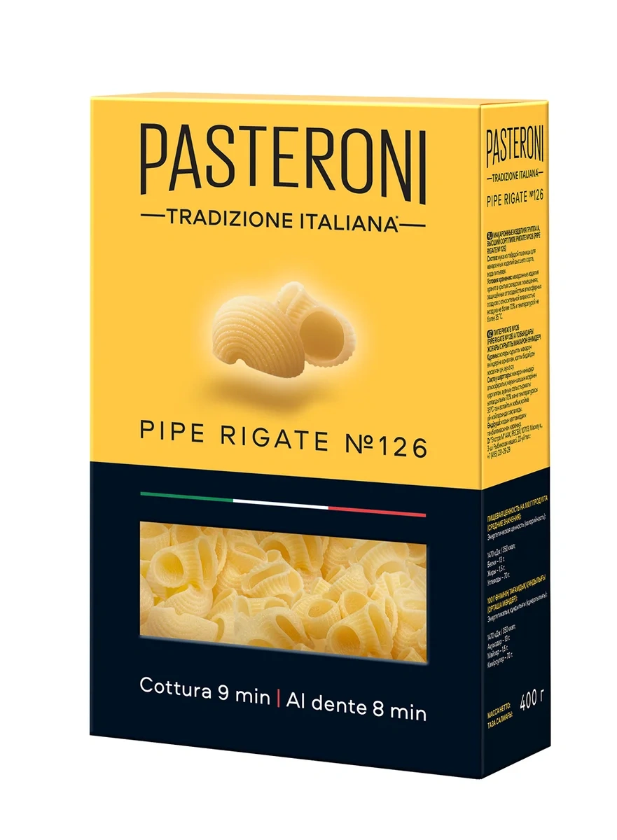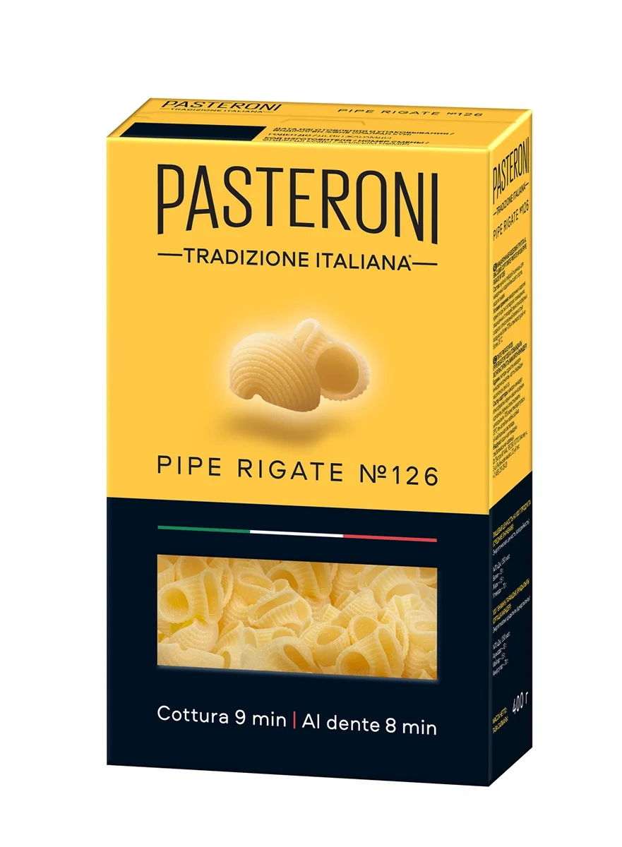 Макароны Pasteroni Пипе Ригате №126, 400г