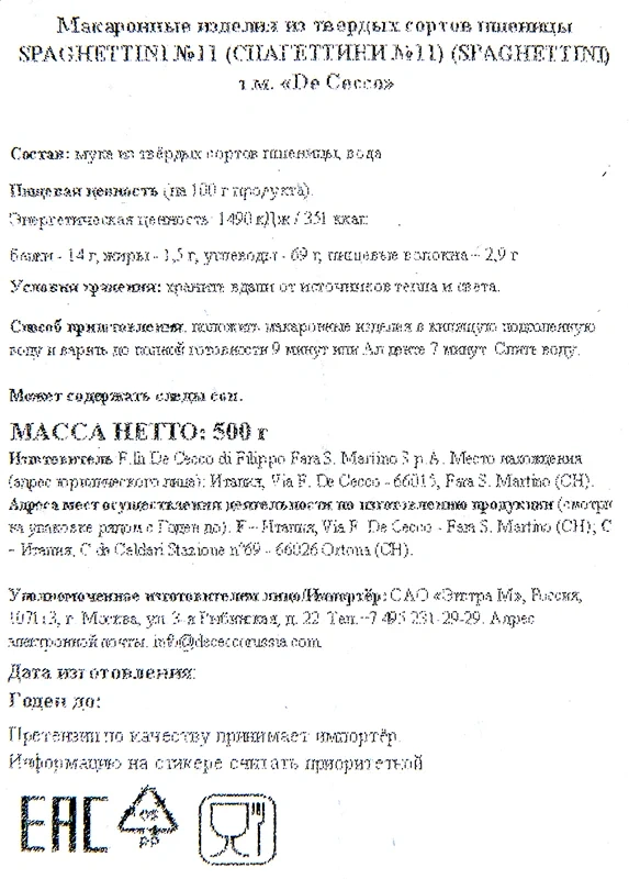 Макаронные изделия De Cecco спагеттини, 500г x 2 шт