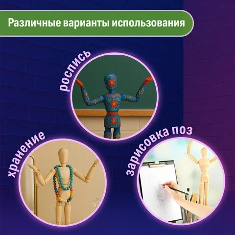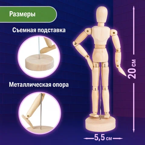 Манекен человека художественный BRAUBERG ART 'CLASSIC', мужской, дерево, высота 20 см, 191287