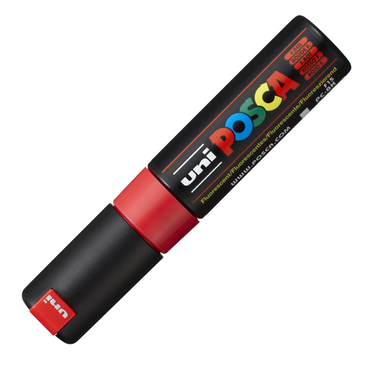 Маркер акриловый Uni Posca PC-8K флуоресцентно-красный, до 8.0 мм, наконечник скошенный