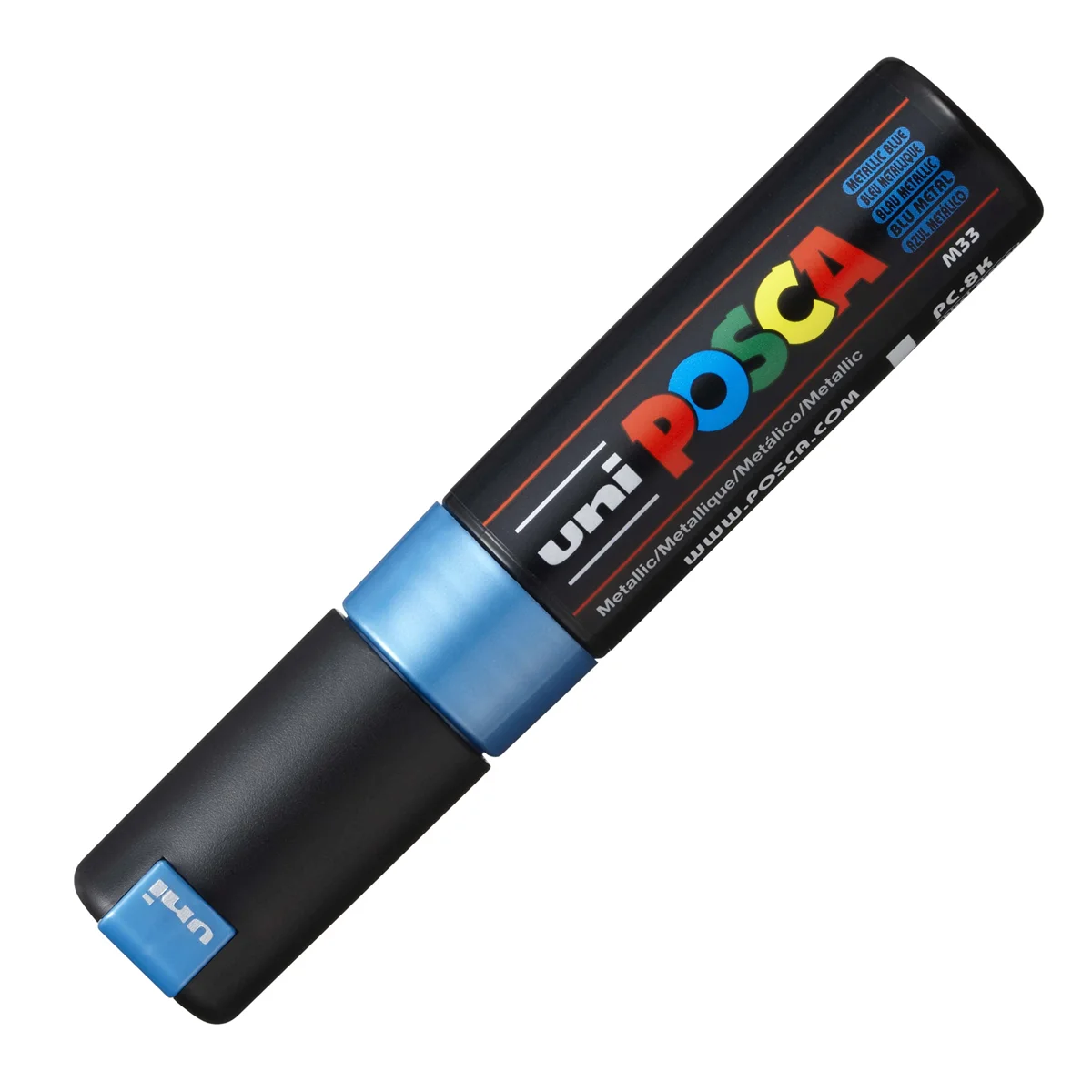 Маркер акриловый Uni Posca PC-8K синий металлик, до 8.0 мм, наконечник скошенный