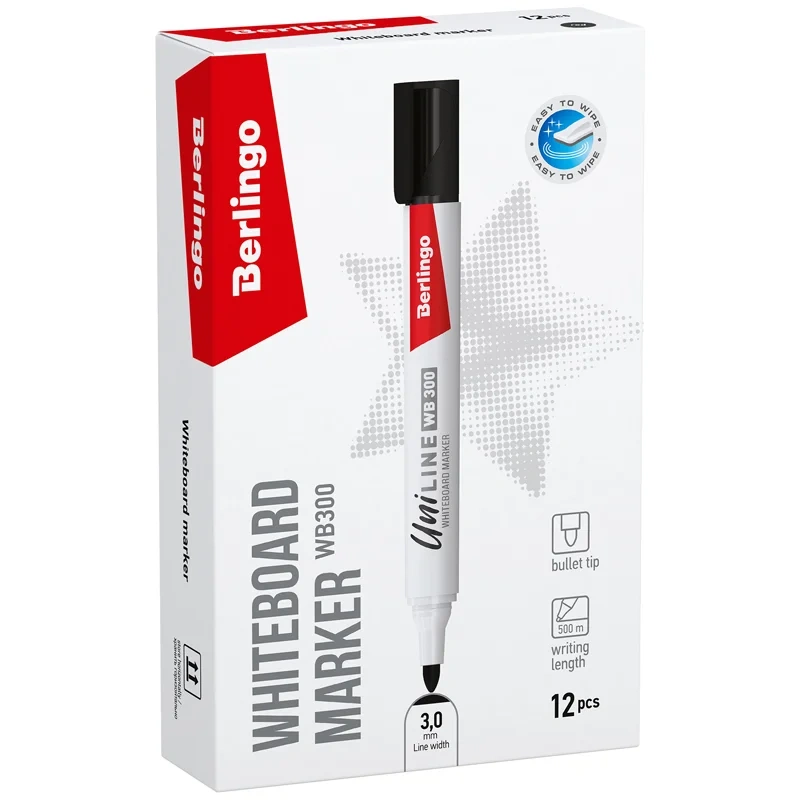 Маркер для белых досок Berlingo 'Uniline WB300', черный, пулевидный, 3мм