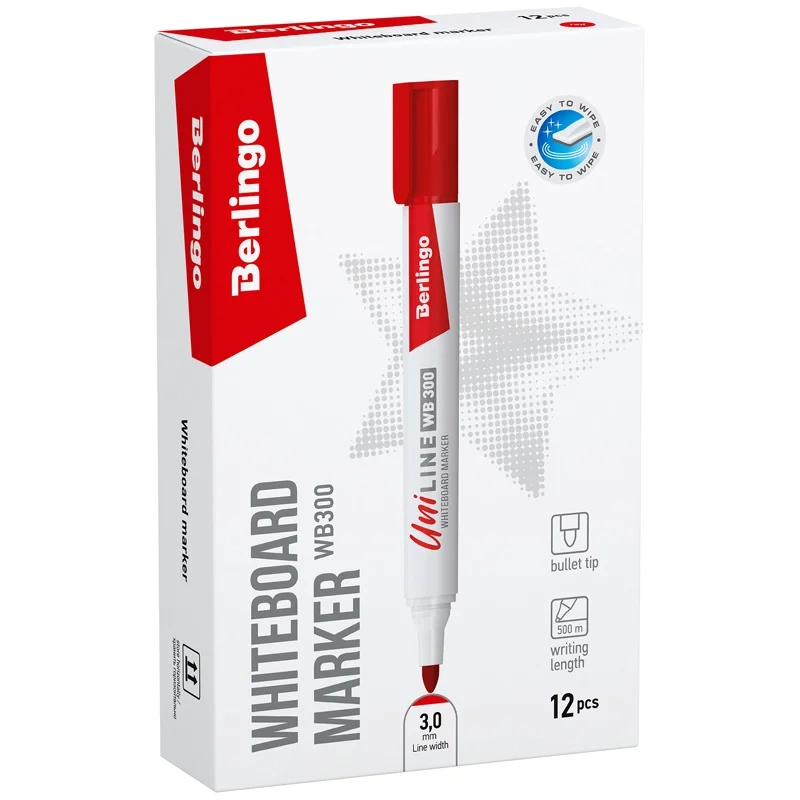 Маркер для белых досок Berlingo 'Uniline WB300', красный, пулевидный, 3мм