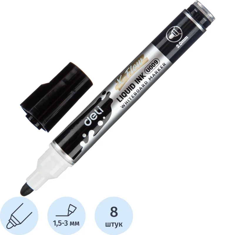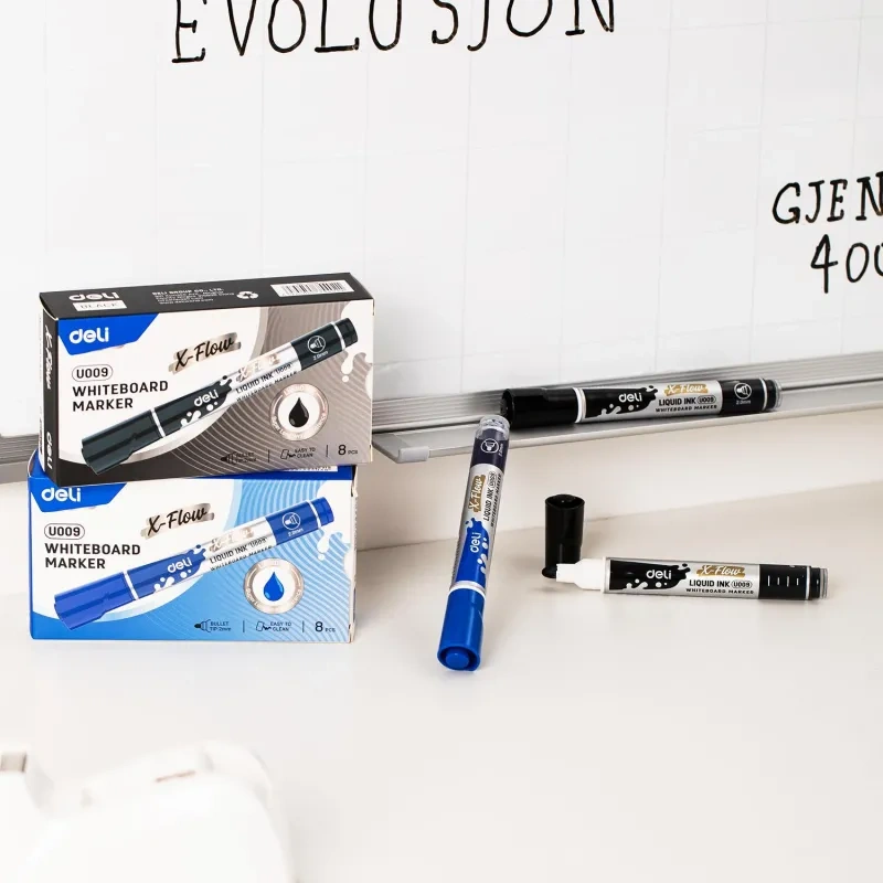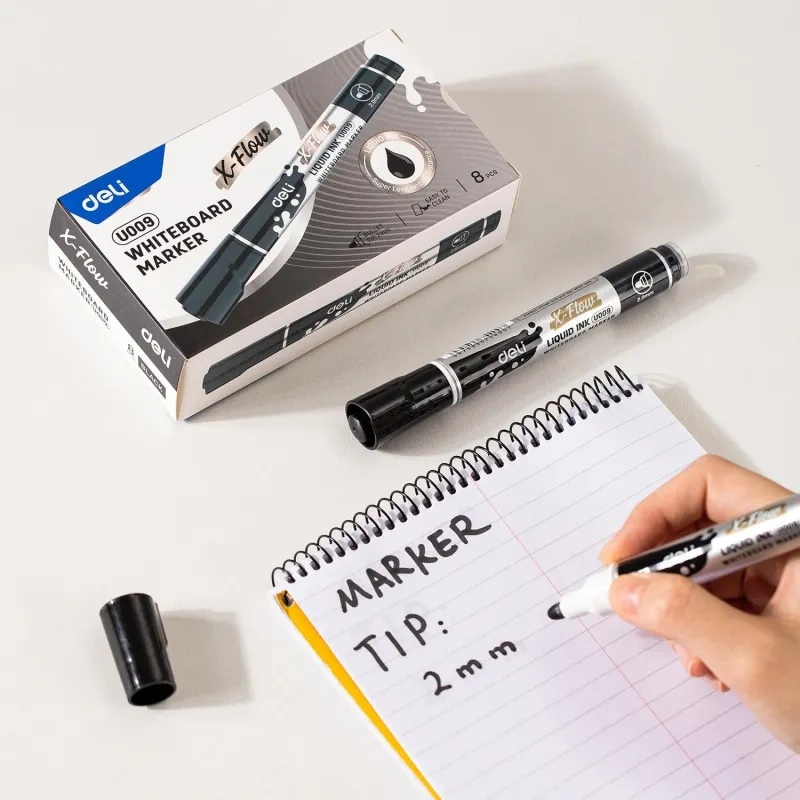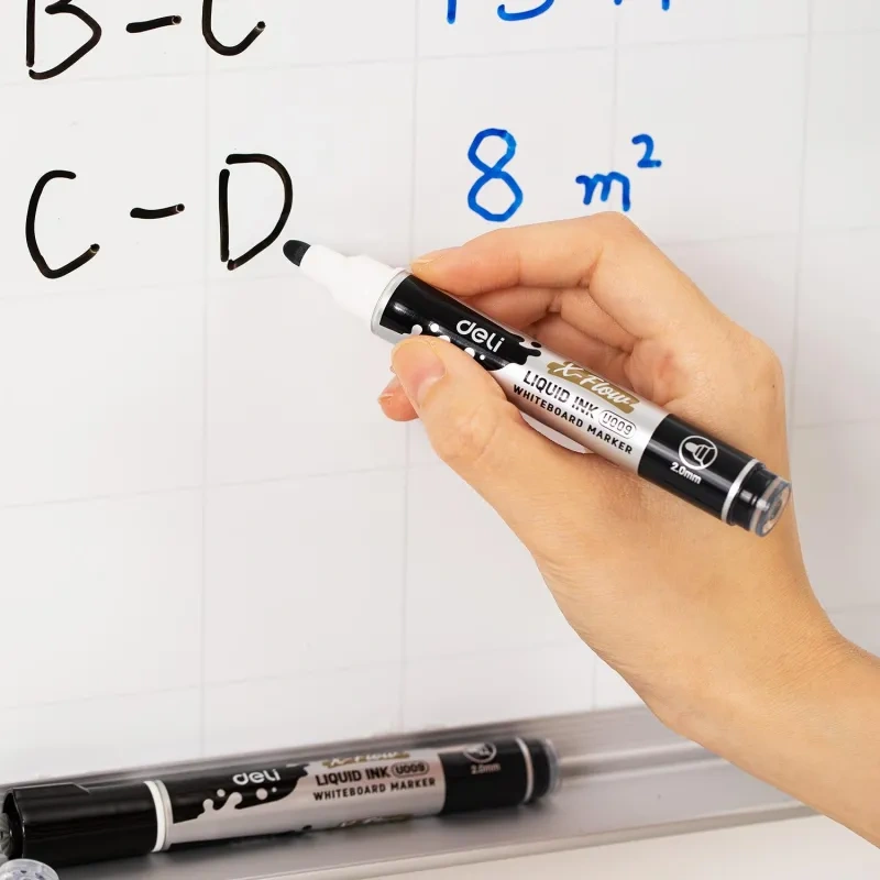 Высококачественный маркер для белой доски Deli X-flow предназначен для повседневного использования. Идеально подходит для маркерных досок, магнитного планера, многоразовых раскрасок и прописей, расписания уроков, планинга, трекера привычек.