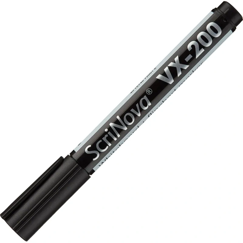 Универсальный маркер ScriNova VX-200 подходит для работы с магнитно—маркерными досками и флипчартами. Яркие чернила легко стираются сухим методом с белой доски и не промокают бумагу флипчарта. Чернила безопасные, на органической основе. Повышенный объем заправки позволяет использовать маркер дольше аналогичных. Долго не высыхает без колпачка. Пластиковый корпус покрыт пленкой, продлевающей срок службы маркера. Легко скользит без скрипа. Надежно пишет с любой скоростью. Толщина линии письма, в зависимости от степени нажатия, колеблется от 1 до 3 мм. Цвет чернил: черный. Чернила на водной основе. Размер одного маркера: диаметр 15 мм, длина 145 мм.