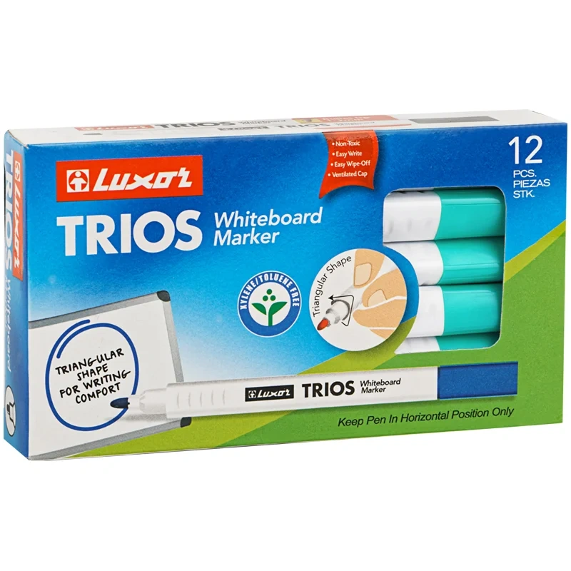 Эргономичный маркер для белых досок Luxor 'Trios' предназначен для использования на досках с магнитно-маркерной и на других непористых поверхностях: стекло, фарфор, пленка.