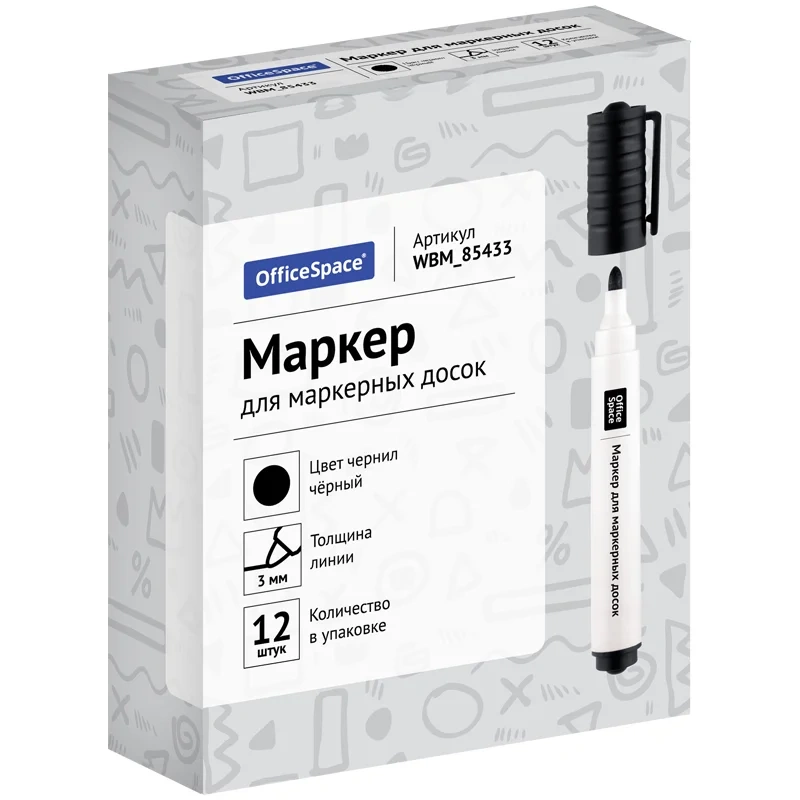 Маркер для белых досок OfficeSpace черный, пулевидный, 3мм