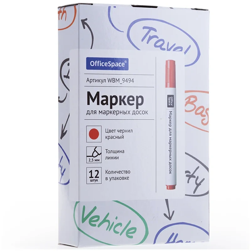 Маркер для белых досок OfficeSpace красный, пулевидный, 2,5мм