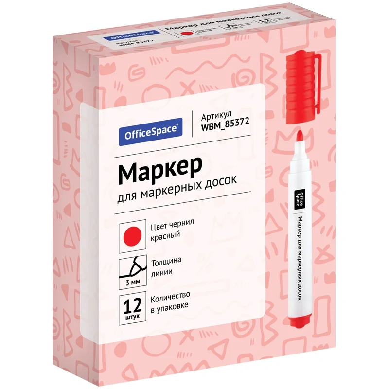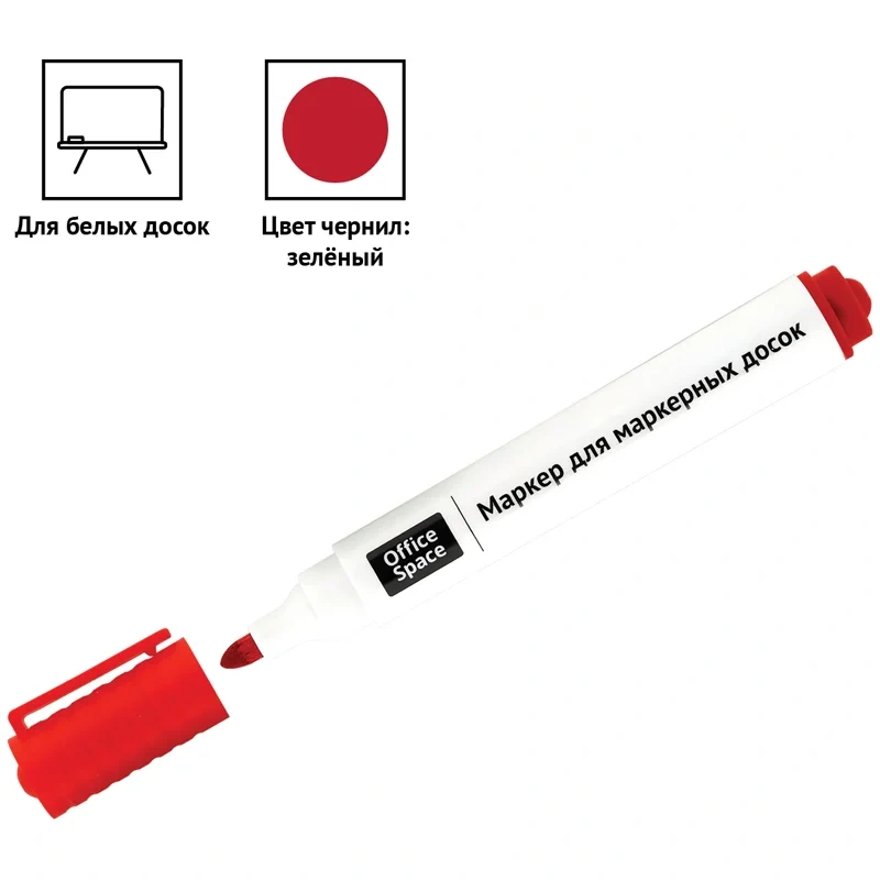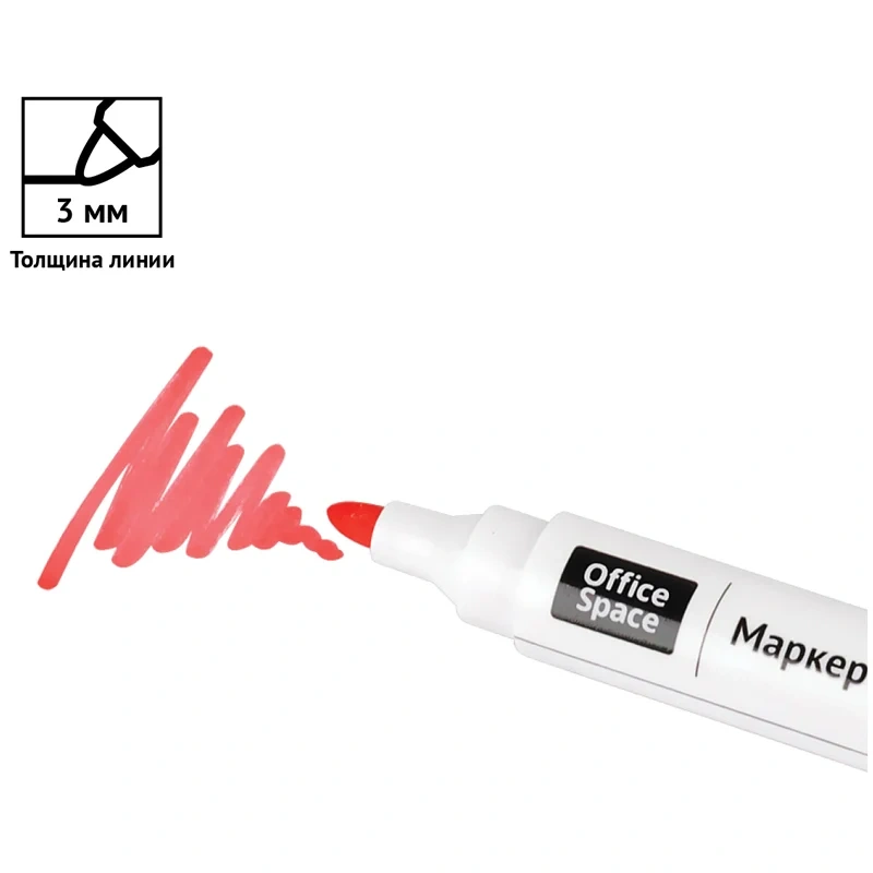 Маркер для белых досок OfficeSpace красный, пулевидный, 3мм