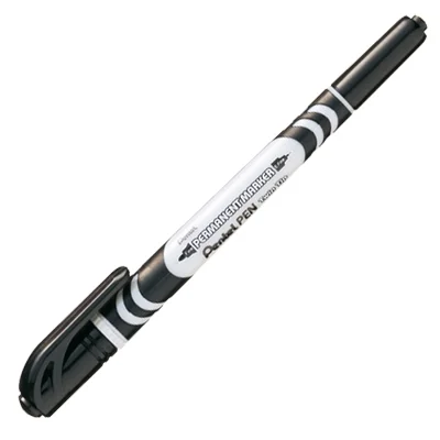 Маркер для CD перманентный Pentel N65W черный, 0.6-3.5мм, пулевидный/ игольчатый наконечник, двухсторонний