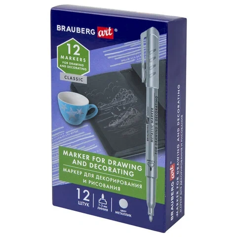 Маркер для декорирования Brauberg ART METALLIC серебристый, линия письма 1-3мм