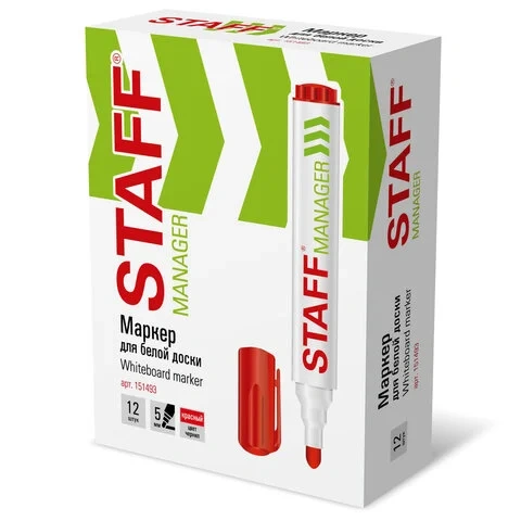 Маркер для досок Staff красный, с клипом, круглый наконечник 5 мм