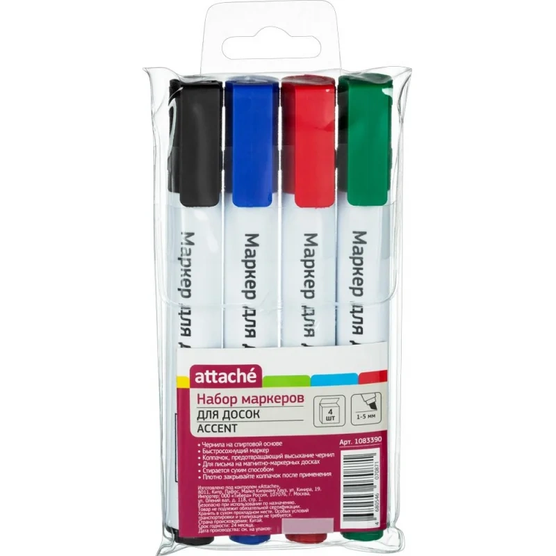 Набор высококачественных маркеров Attache Accent предназначен для письма на белых досках с магнитно—маркерной поверхностью.