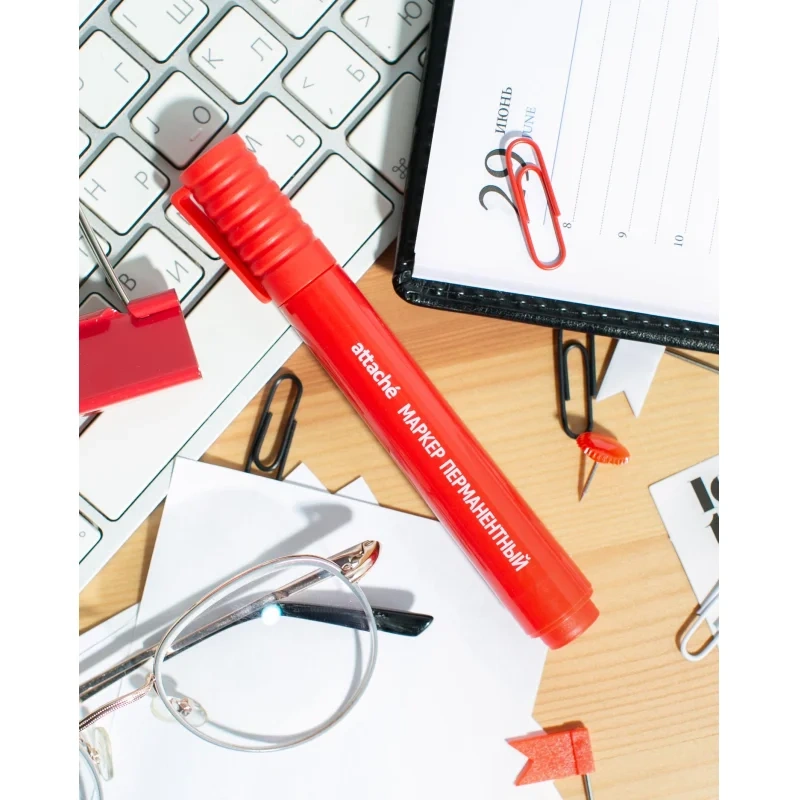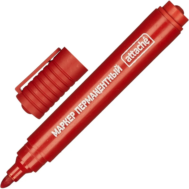 Маркер перманентный Attache красный, 2-3мм, круглый наконечник, полулаковый