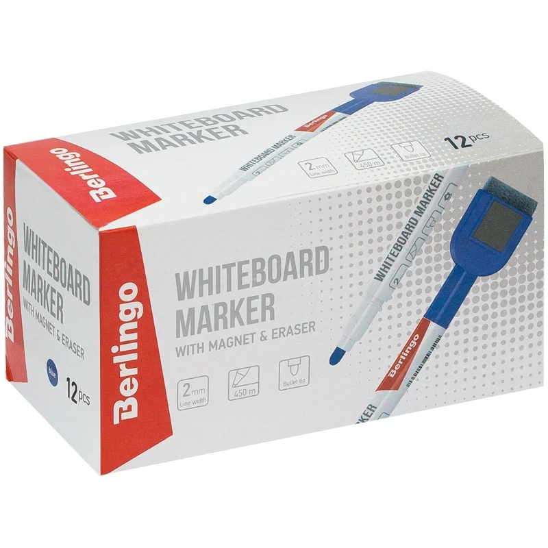 Маркер для досок Berlingo 2мм, пулевидный наконечник, синий, на магните
