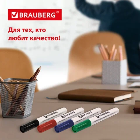 Маркер для досок Brauberg набор 4 цвета, 5мм, круглый наконечник