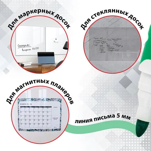 Набор маркеров для белой доски с удобной резиновой вставкой в зоне захвата. Эргономичный корпус, выполненный по технологии двойного литья, обеспечивает комфорт при использовании и обладает стильным внешним видом. Характеристики Цвет: красный, синий, зеленый, черный Толщина линии письма: 5 Наконечник: круглый Количество маркеров в наборе: 4 шт. Основа чернил: водная Устойчив к засыханию: да Чернила стираются сухой губкой: да Не протекает при перепаде давления: да Наличие клипа на колпачке: да Эргономичный корпус: да Материал корпуса: пластик Артикул производителя: 151252. Штрих-код: 4606224178066. Производитель: Китай.