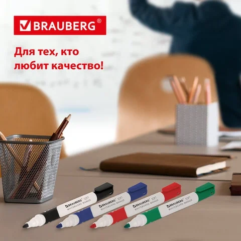 Маркер для досок Brauberg Soft набор 4 цвета, 5мм, круглый наконечник, резиновая вставка