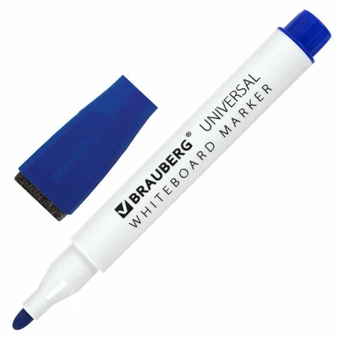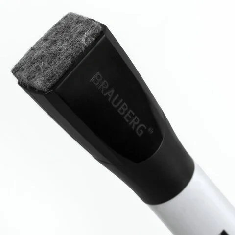 Наконечник круглой формы обеспечивает толщину линии письма 3 мм, что позволяет писать крупным шрифтом, который будет хорошо виден. Основа чернил - спиртовая. Чернила быстро высыхают и не оставляют разводов, легко стираются подушечкой, закрепленной на колпачке или специальным стирателем для магнитно-маркерных досок.
