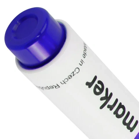 Маркер для белой магнитно-маркерной доски, синий. Чернила стираются с магнитно-маркерной доски сухой тряпочкой. Подходит для письма на любой гладкой поверхности пластик, стекло, пленка... Светостойкие чернила, на спиртовой основе. Пулевидный наконечник, толщина линии 2,5 мм. Хранить в горизонтальном положении.