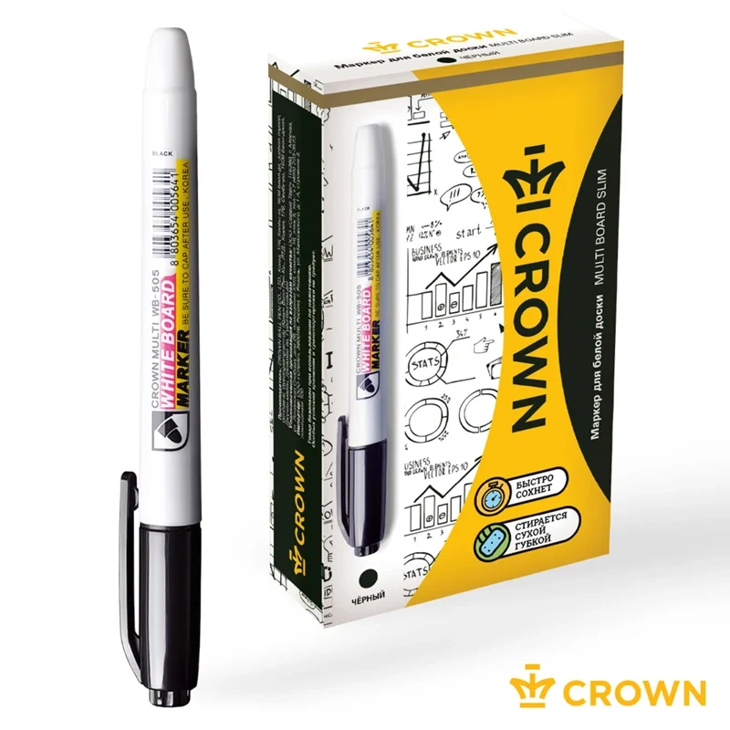 Маркер для досок Crown WB-505 черный, 2мм, пулевидный наконечник