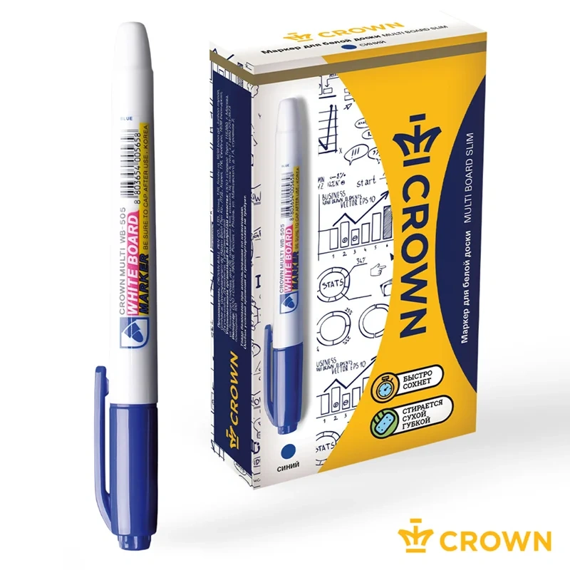 Маркер для досок Crown WB-505 синий, 2мм, пулевидный наконечник