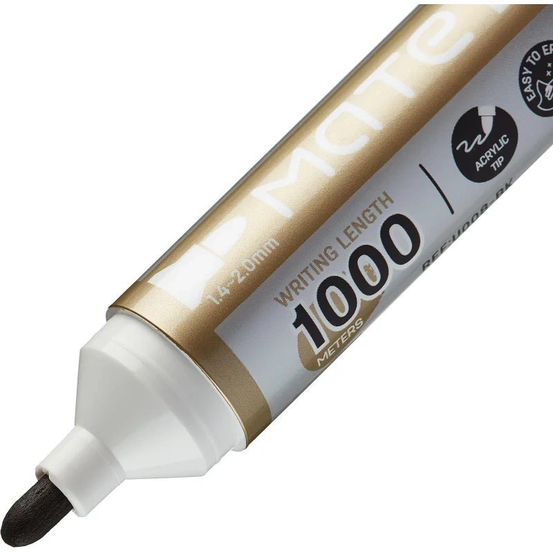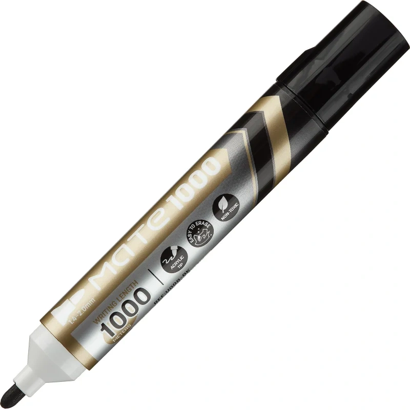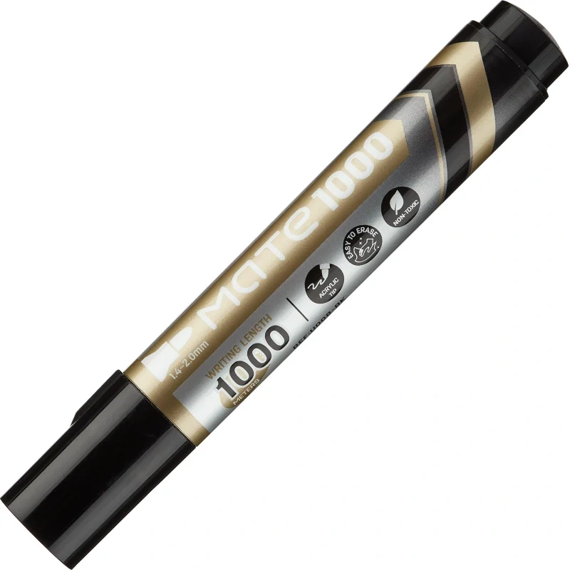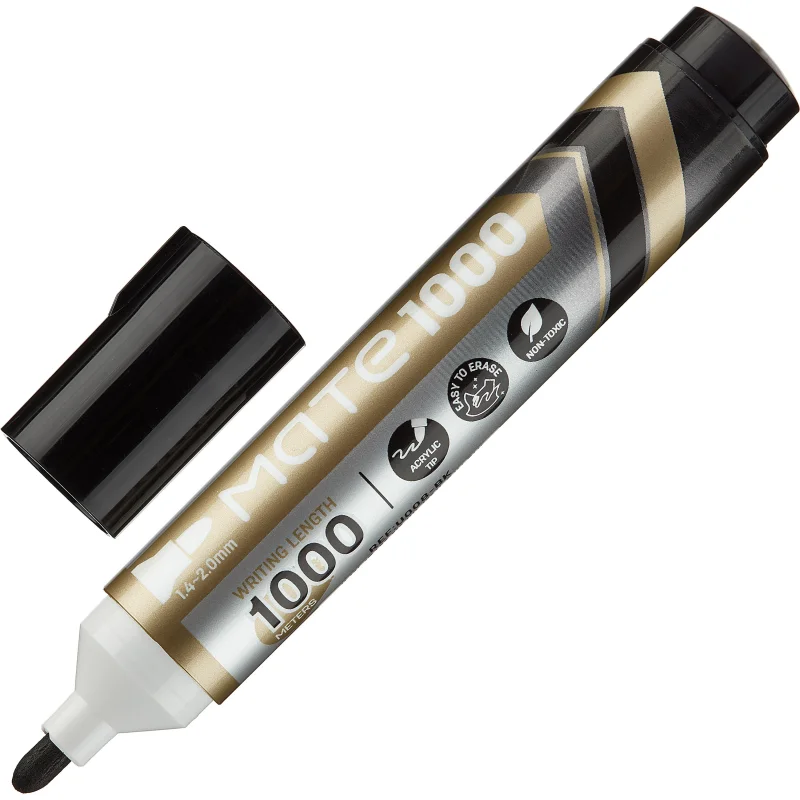 Маркер черный для досок Mate в прочном круглом пластиковом корпусе. Благодаря использованию специальных чернил маркер является нетоксичными, имеет слабый запах и при этом не высыхает в течении 24 часов без колпачка. Стираются сухой губко, не протекает при перепаде давления. Предназначен для письма на досках с магнитно—маркерной поверхностью. Форма наконечника круглая. позволяет провести линию толщиной от 1.5 мм до 3 мм. Снятый колпачок не потеряется благодаря тому, что во время работы его можно надевать на верхнюю часть маркера.