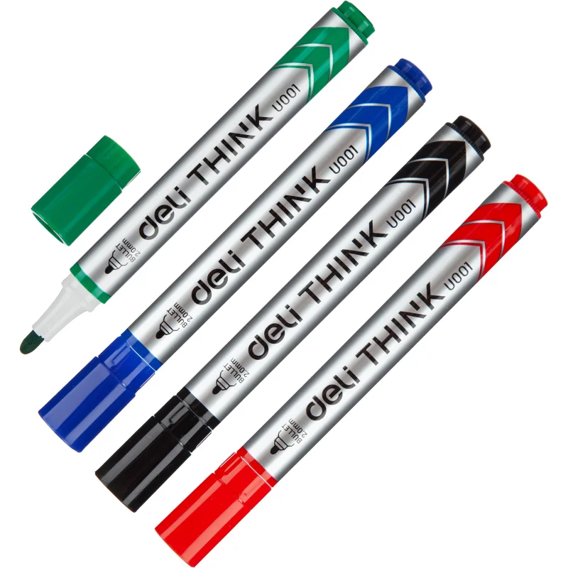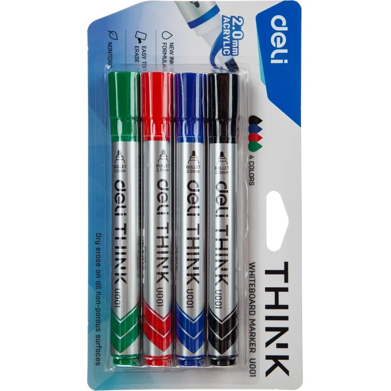 Набор маркеров для белой доски Deli Think для повседневного использования. Набор идеально подходит для использования на школьных занятиях и детского творчества на белых досках с магнитно—маркерной поверхностью.