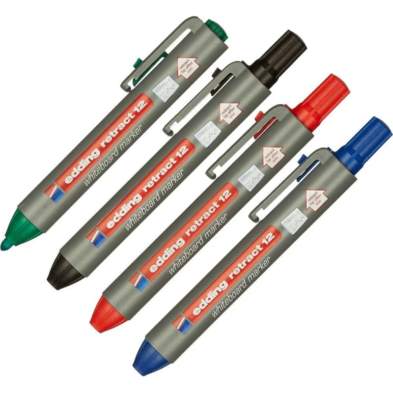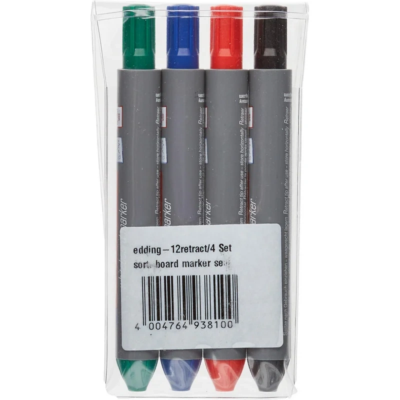 Маркер для досок Edding Retract 12 набор 4 цвета, 2мм, круглый наконечник, с кнопкой
