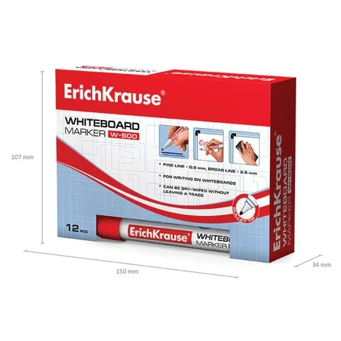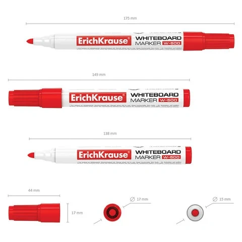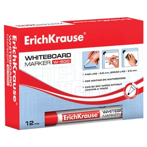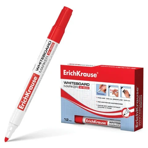 Маркер для досок Erich Krause W500 красный, 0.8-2.2мм, пулевидный наконечник