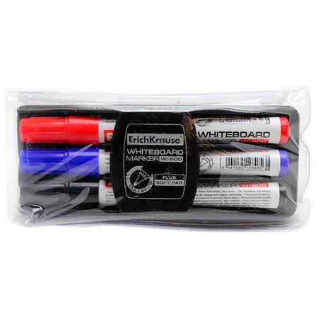 Маркер для досок Erich Krause W500 набор 3 цвета, 0.8-2.2мм, пулевидный наконечник, с губкой