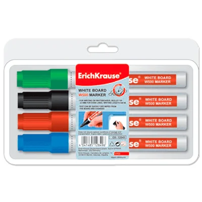 Маркер для досок Erich Krause W500 набор 4 цвета, 0.8-2.2мм, пулевидный наконечник