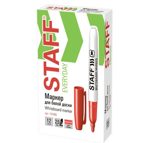 Маркер для досок Staff красный, 2.5мм, круглый наконечник