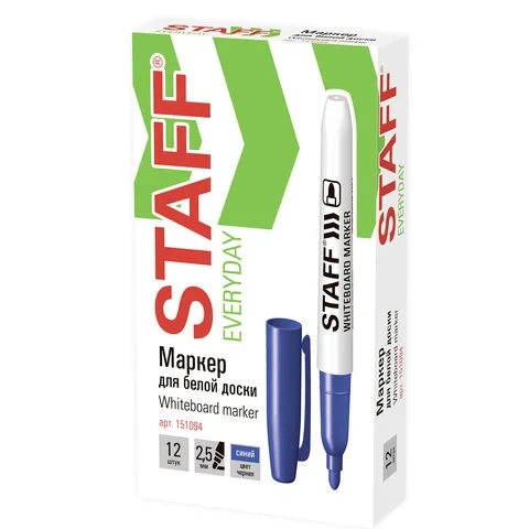 Маркер для досок Staff синий, 2.5мм, круглый наконечник