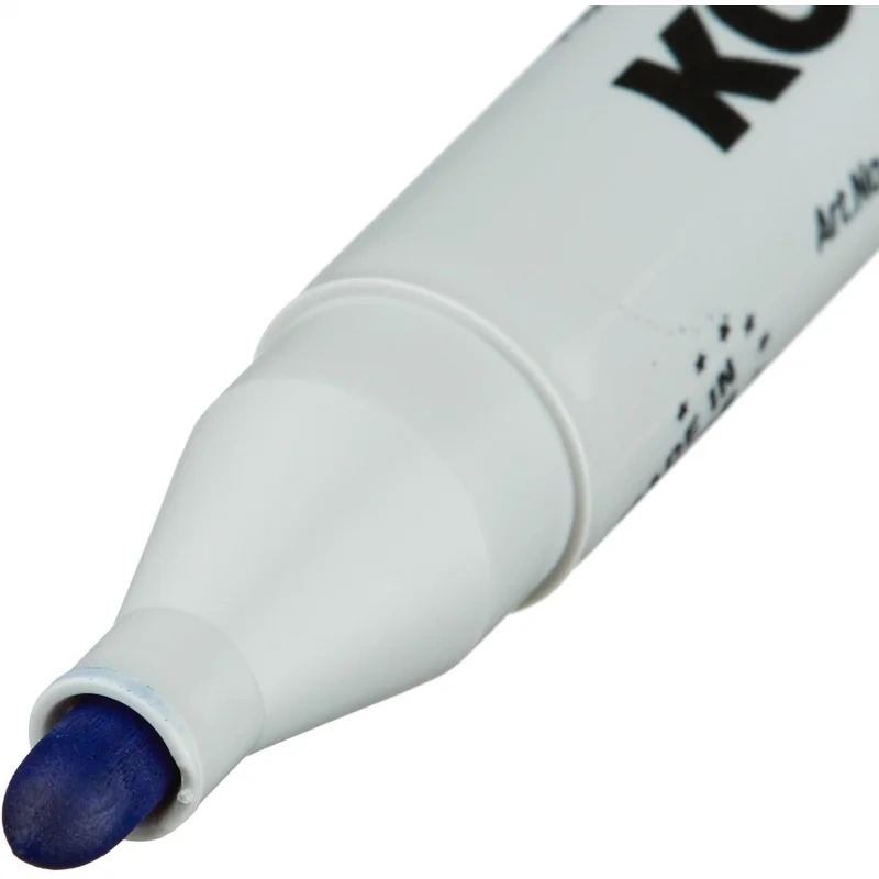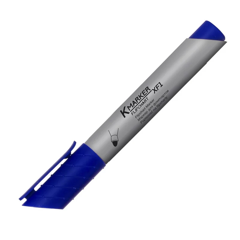 Маркер для бумажных флипчартов Kores XF1. Высококачественный маркер в оригинальном дизайне. Яркий и насыщенный синий цвет. Чернила на водной основе — не просачиваются сквозь бумагу. Не токсичен: не содержат кислот, толуол и бензол. Равномерная подача чернил гарантирует мягкое и комфортное письмо. Круглый наконечник позволяет проводить линии толщиной 3 мм. Размеры маркера: диаметр 17 мм, длина 141 мм. Снятый колпачок не потеряется благодаря тому, что во время работы его можно надевать на верхнюю часть маркера. Устойчивость к высыханию при открытом колпачке до 10 дней.