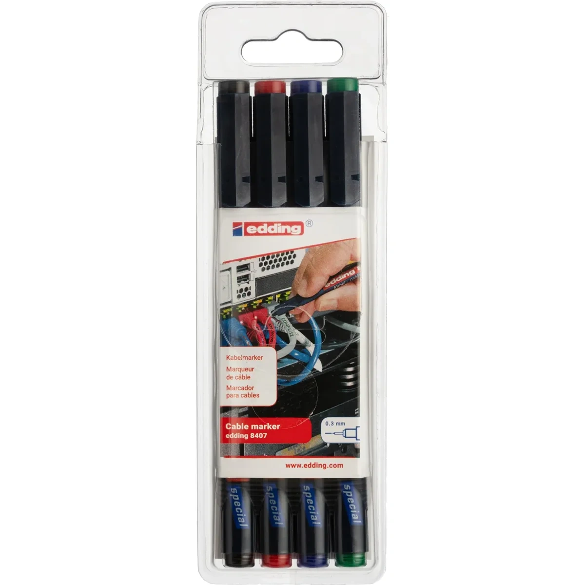 Маркер для кабеля Edding 8407 набор 4 цвета, 0.3мм, пулевидный наконечник