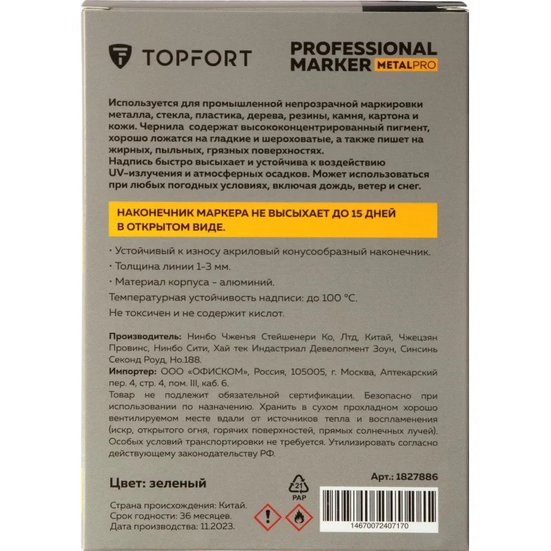 Маркер промышленный перманентный Topfort ZP1540 зелёный 1-3 мм (1827886)