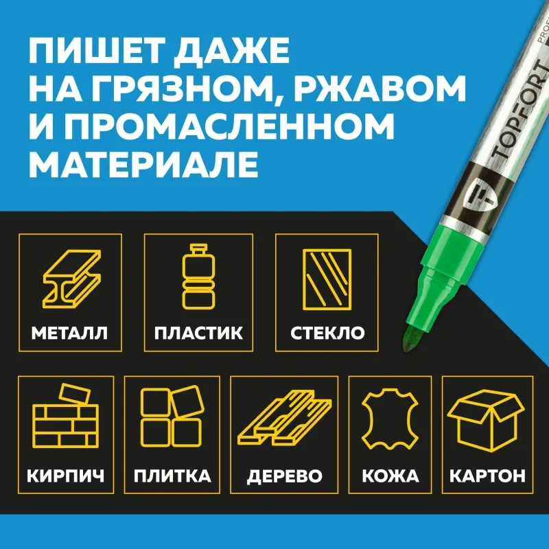 Маркер для металла TOPFORT MetalPro 1-3 мм зеленый