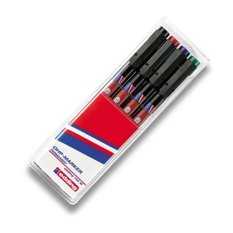 Маркер для пленок Edding 142М набор 4 цвета, 1мм, круглый наконечник, для деликатных гладких поверхностей